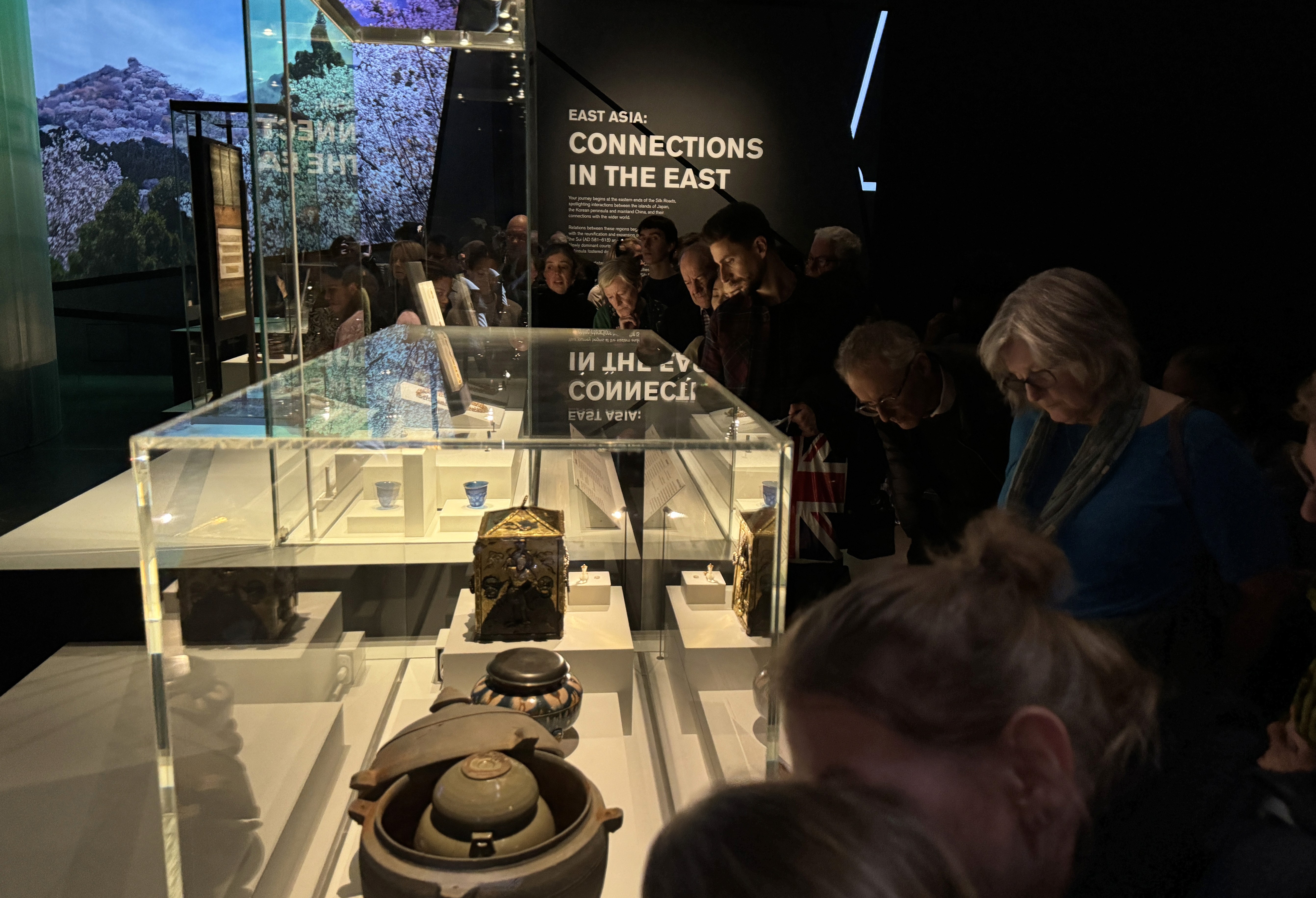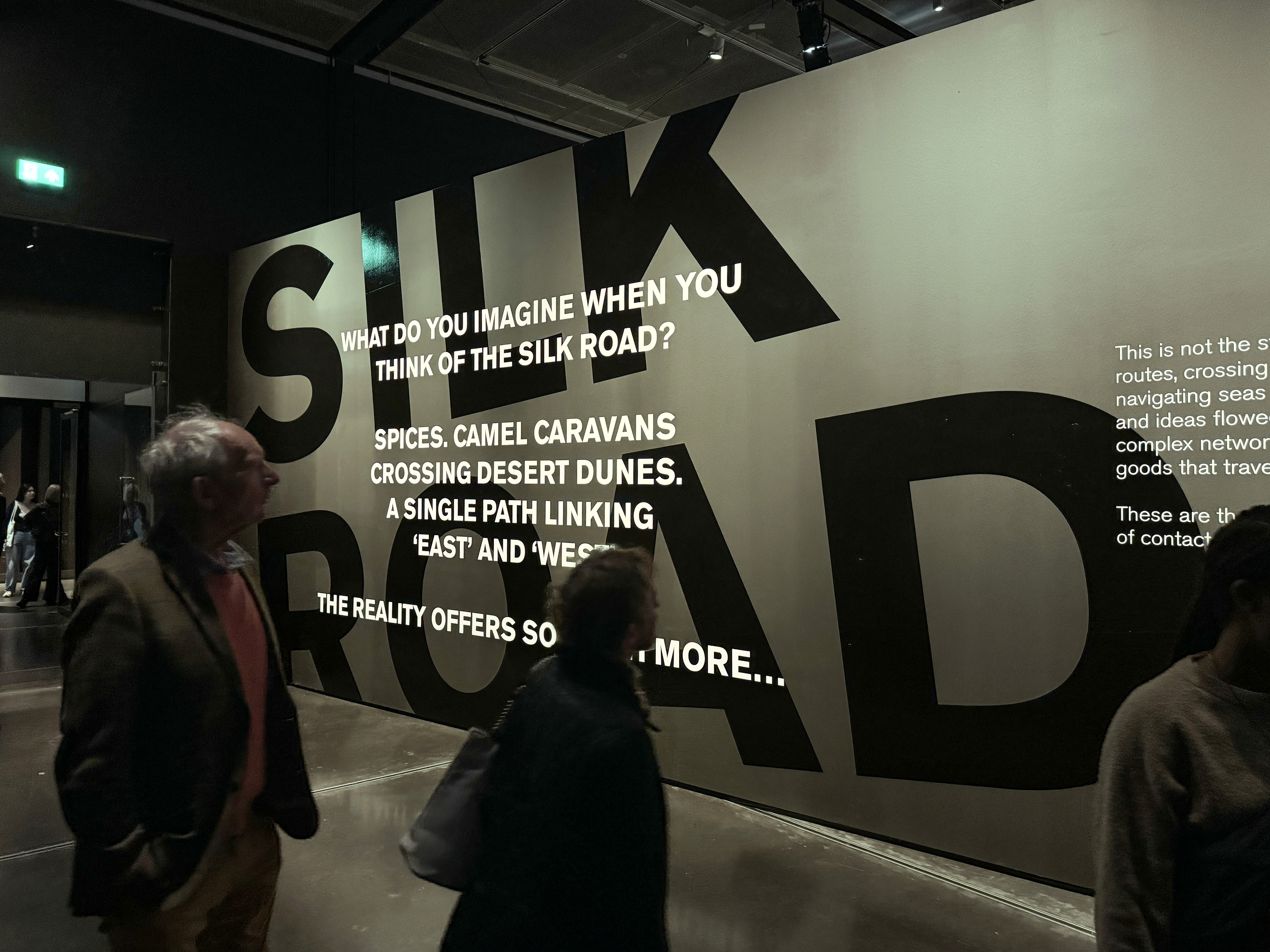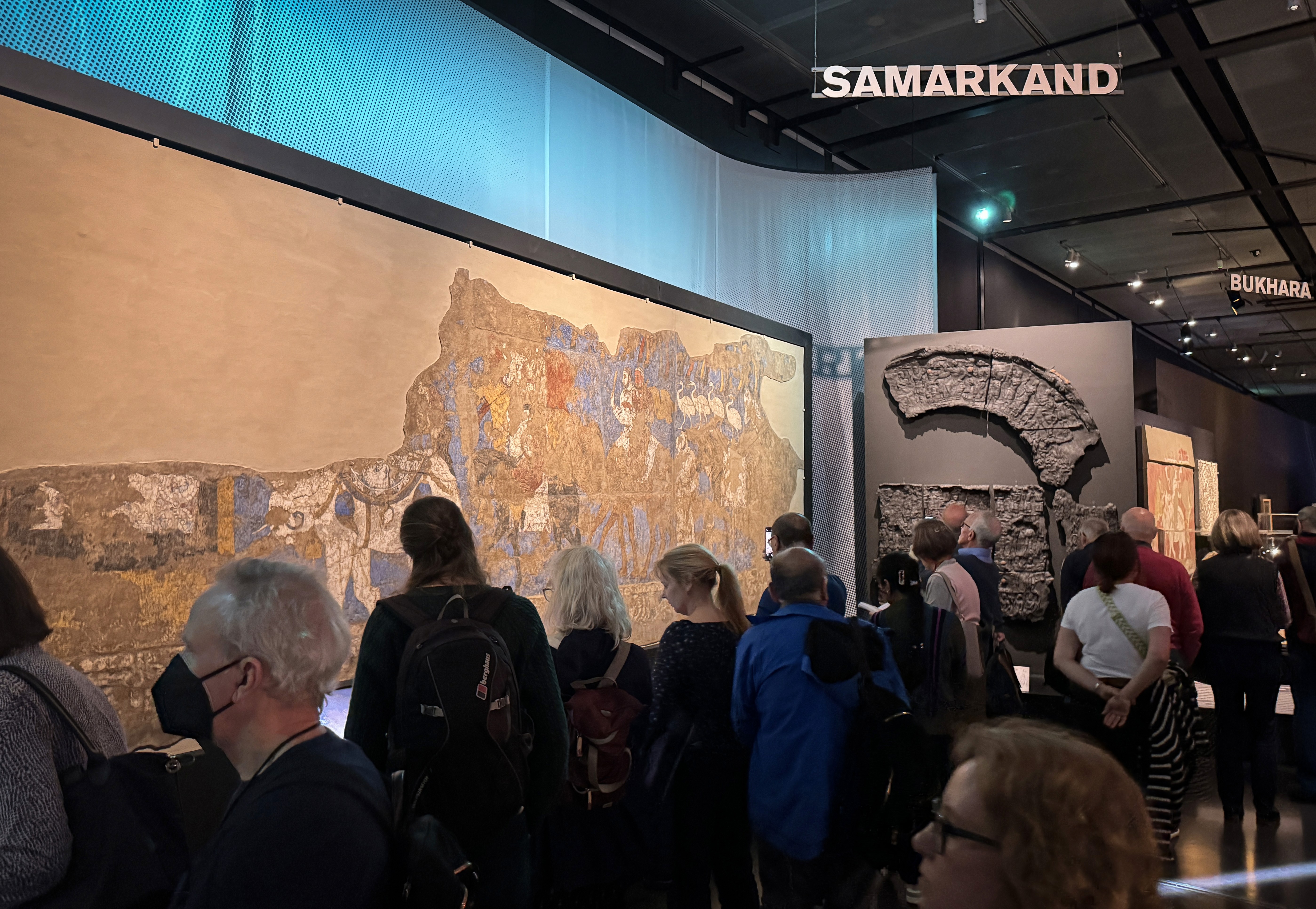 영국박물관의 실크로드 특별전은 유라시아 대륙을 가로지르는 거대한 교역·문화 네트워크를 재조명하는 대형 프로젝트로, 2024년 9월 26일부터 2025년 2월 23일까지 개최되었습니다. 이번 전시는 동아시아에서 유럽 서부에 이르기까지 폭넓은 문명권을 하나의 흐름으로 엮어낸 국제급 기획으로, 로이터(Reuters), AP통신(AP News), AFP통신 등 세계 주요 매체들은 이를 “올해 가장 주목받는 글로벌 전시 중 하나”로 소개한 바 있습니다. 전시는 동아시아에서부터 북서유럽에 이르기까지, 실크로드를 구성한 주요 문명권과 도시들을 총망라하는 대규모 구성으로 이루어졌으며, 이를 통해 실크로드가 단일한 길이 아니라 아시아와 유럽 전역이 거대한 문명 네트워크로 긴밀하게 연결되어 있었다는 사실을 선명하게 보여주고 있습니다. 이 장대한 서사의 중심에는 동서양을 잇는 실크로드의 한가운데에서 교역·외교·종교·사상이 집중되던 사마르칸드가 자리합니다. 전시에서도 이러한 위상이 명확하게 반영되어, 사마르칸드는 주요 축을 이루는 핵심 섹션으로 구성되었습니다. 이 사마르칸드 섹션에는 당시 실크로드 중심도시의 면모를 시각적으로 보여주는 아프라시압 궁전벽화가 이례적으로 실물 전시되었습니다. 그러나 벽화는 세월의 흐름 속에서 발생한 훼손과 퇴색으로 인해 실물만으로는 그 전체 구성과 도상적 의미를 온전히 파악하기 어렵습니다. 이에 따라 TRIC의 디지털복원본이 실물 전시와 병행되어, 실물에서 확인이 어려운 장면·색채·맥락 정보를 보완적으로 제시함으로써 관람객의 이해를 돕는 역할을 하였습니다. 디지털복원본은 고고학적 조사, 색채·안료 분석, 문헌 비교 등 다양한 근거를 토대로 현존 정보의 충실한 재현에서부터 보수적 복원까지 여러 층위의 방식이 결합된 형태로 구성되어, 실물과 디지털 자료가 상호 보완적으로 하나의 서사를 완성하도록 전시 전체의 전달력을 높였습니다.