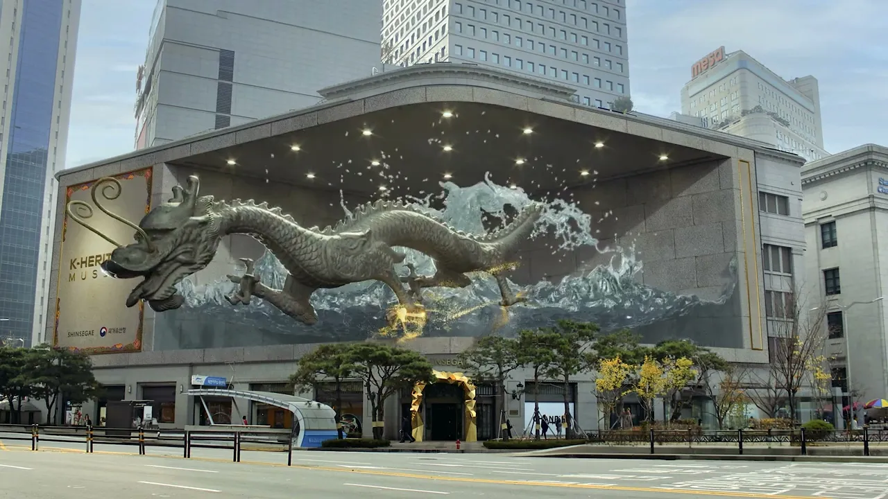 In the heart of Myeongdong, Seoul, a majestic bronze dragon — a royal relic of the Joseon Dynasty unearthed from the pond near Gyeonghoeru Pavilion — now soars across the giant digital signage of Shinsegae Square. As part of the K-Heritage Museum series, TRIC (Technology Research Institute for Culture & Heritage) conceptualized and produced this monumental media art installation, commissioned under the National Palace Museum’s digital content initiative.