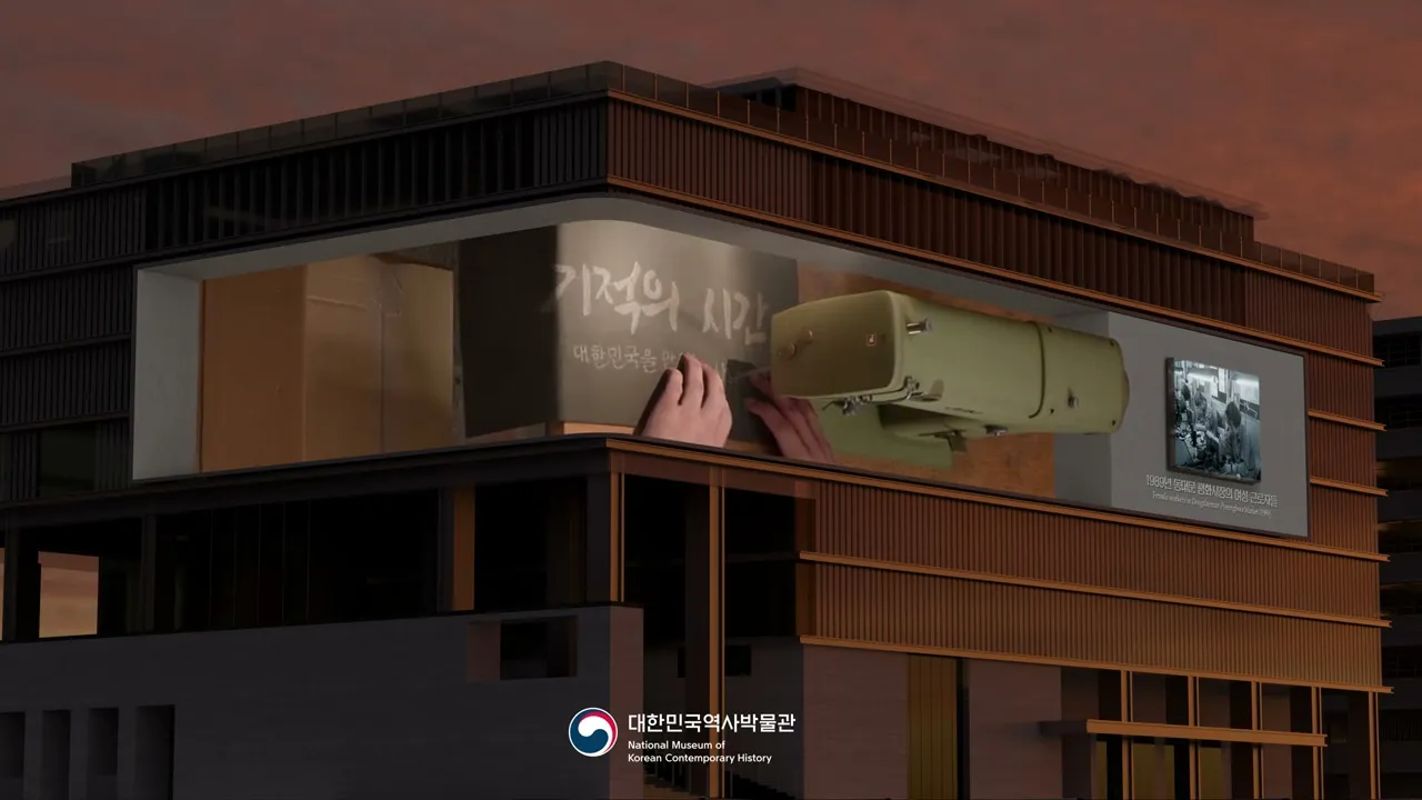 TRIC produced and installed the large-scale media artwork Miracle of Time: The People Who Built Korea on the K-Culture Screen — a monumental LED façade on the exterior of the National Museum of Korean Contemporary History.