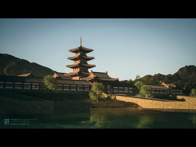 문화유산기술연구소에서는 KBS의 협업 요청으로 본 다큐멘터리의 중심 무대인 왕흥사를 디지털로 복원하고, 메타버스나 리얼타임 엔진에서 실시간으로 가동되는 디지털 헤리티지 애셋으로 개발하여 다큐멘터리속 백제시대의 가상 환경을 연출했습니다.